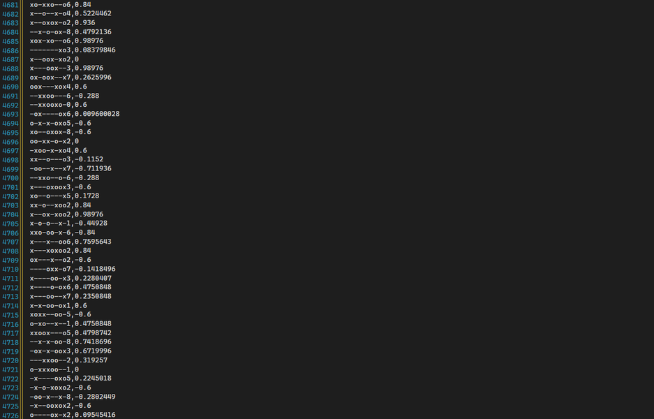 List of plays and their Q-values.
